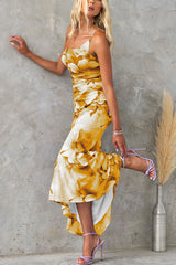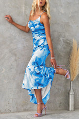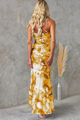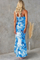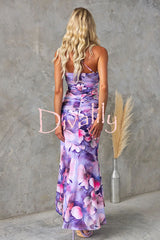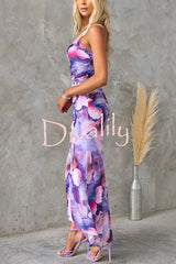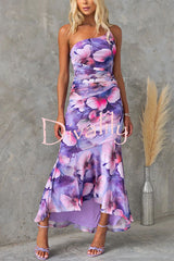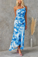 Deja mesh overlay floral print one shoulder ruched stretch maxi dress