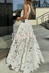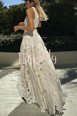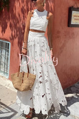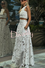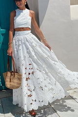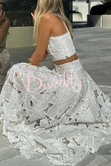 Next trip floral embroidery crochet lace crop tank top and elastic waist pocket maxi skirt set