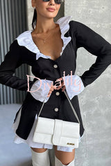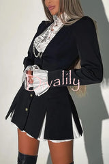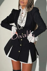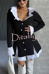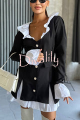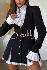 Altair contrast ruffled shirt patchwork button pleated blazer mini dress