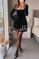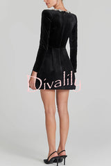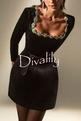 Endless celebration velvet jewel embellished trim long sleeve pocketed mini dress