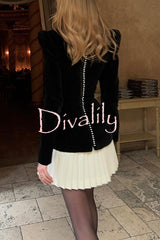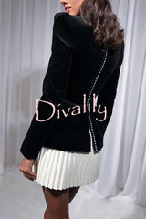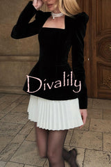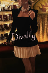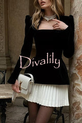Netta velvet square neck long sleeve back pearl detail pleated mini dress