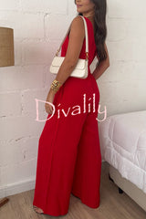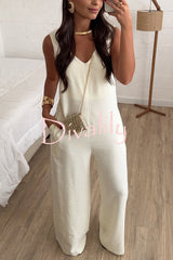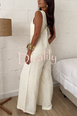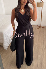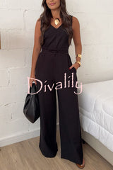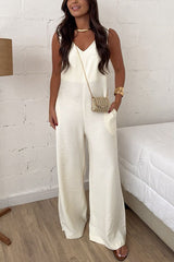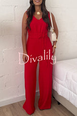 Elaris linen blend v-neck tie-up waist pocketed h-line wide leg jumpsuit