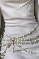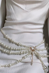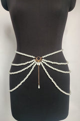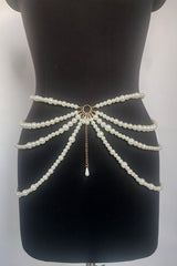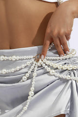 Fashionable multi-layer pearl beaded waist necklace