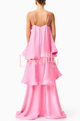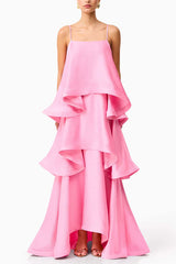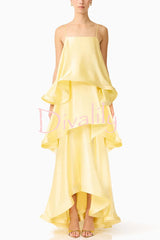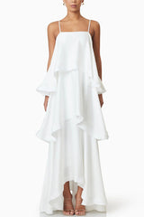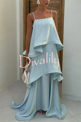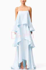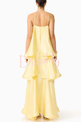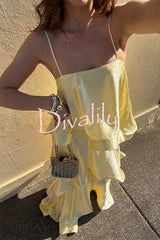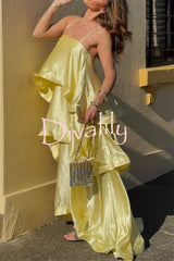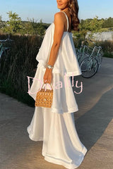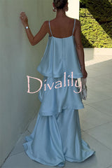 Soft and smooth satin tiered slip square neck a-line maxi dress