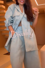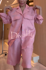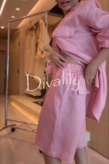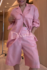 Solyn linen blend double-layer flap long sleeve shirt and elastic waist pocket bahamian shorts set