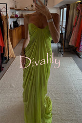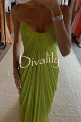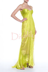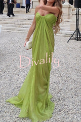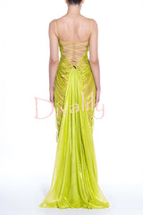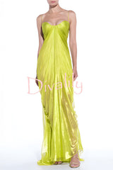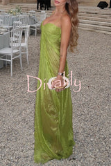 Victoria shimmering and flowing pleated fabric back lace-up drape maxi dress