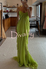 • This Victorian-style gown is crafted from flowing fabric, elegantly accentuating her graceful figure. The dress features pleats, a daring open back design with delicate straps, and a sweeping train, exuding undeniable sex appeal.Our distinctive clothing will add instant style to your wardrobe.