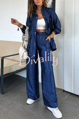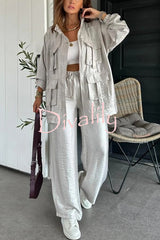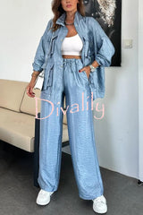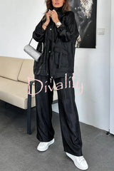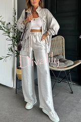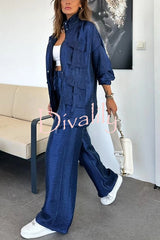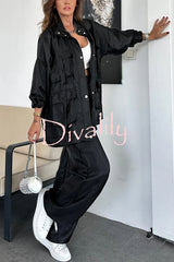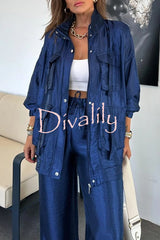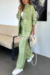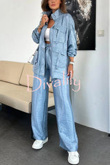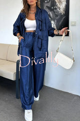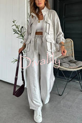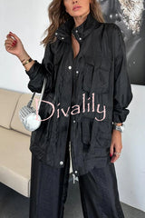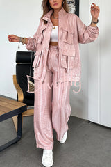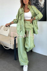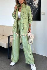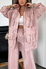Easy on me metallic fabric flap pocket cargo style zipper loose jacket