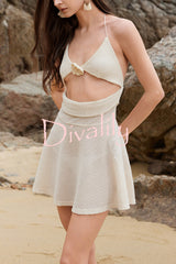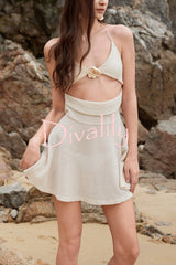 Solid color halter neck sleeveless hollow-out slim-fit knitted cover-up mini dress