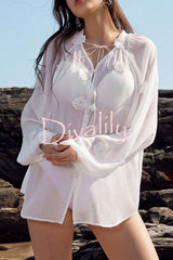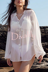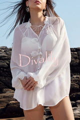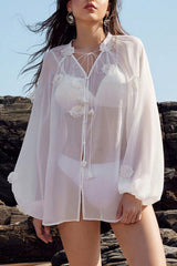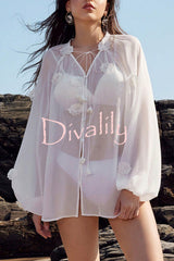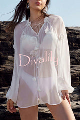 Solid color sheer chiffon long-sleeved loose cover-up top