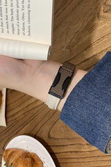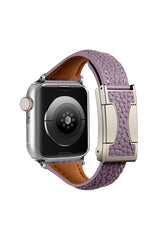 Fashionable genuine leather lychee pattern double c magnetic buckle watch strap