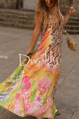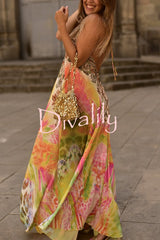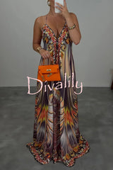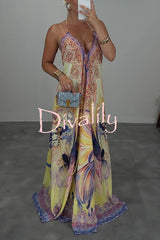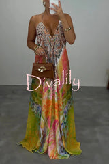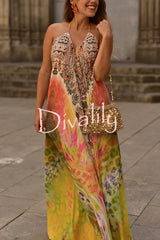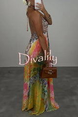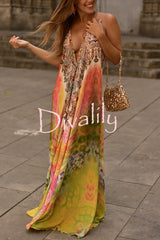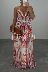 Bohemian style unique print sleeveless backless loose maxi dress