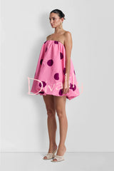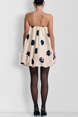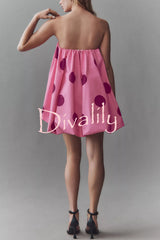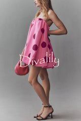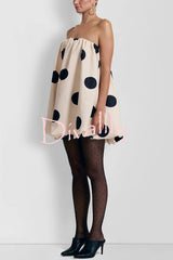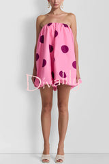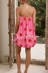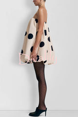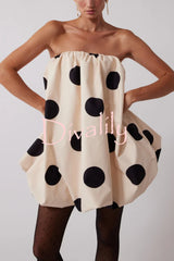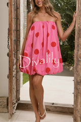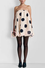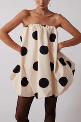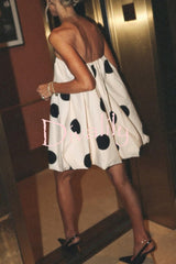 Fashionable polka dot print off-shoulder sleeveless loose mini dress