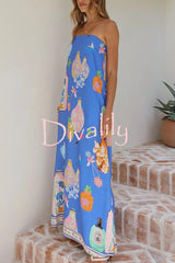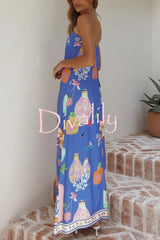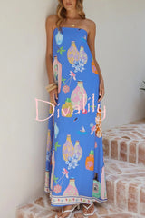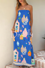 Linen blend perfume bottle print sleeveless off-shoulder casual pocket vacation maxi dress