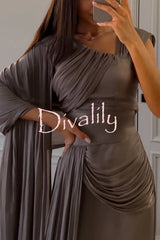 Solid color satin sleeveless waist elegant pleated ribbon maxi dress