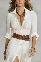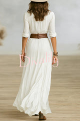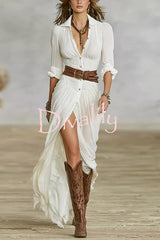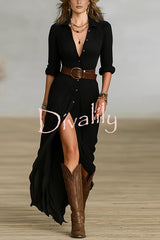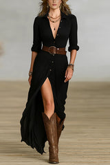 Fashion lapel single-breasted waist shirt-style maxi dress