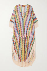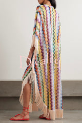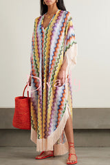Mezcal knit colorful zigzag pattern tassle trim loose kaftan maxi dress
