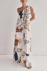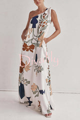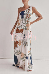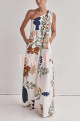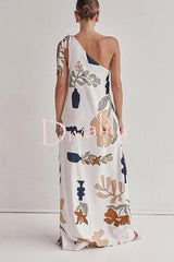 Matches the vacation unique print one shoulder tie-up pocketed loose maxi dress