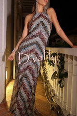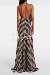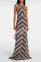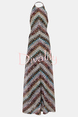 Jodie knit colorful herringbone print halter open back maxi dress
