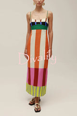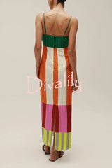 Beach moment linen blend unique color block slip maxi dress