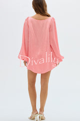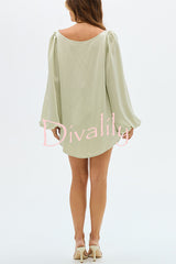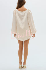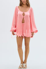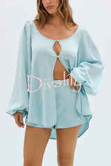 Alexis satin cutout button balloon sleeve shirt and mid waist bow detail pocket shorts set