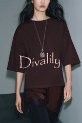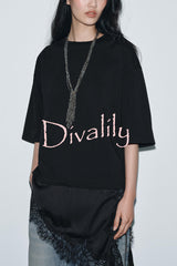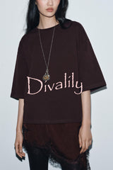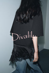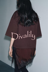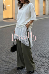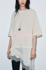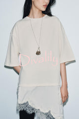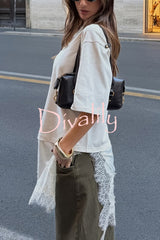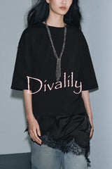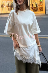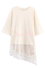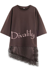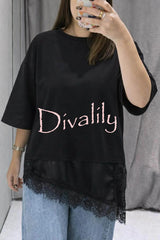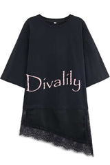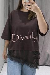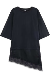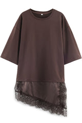 Stylish round neck short-sleeved patchwork lace hem loose t-shirt