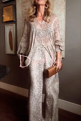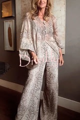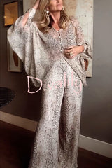 Iselle animal print button up batwing sleeve shirt and elastic waist wide leg pants set