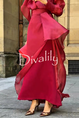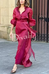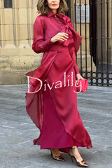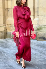 Lily chiffon bow detail puff sleeve blouse and elegant layered maxi skirt set