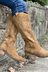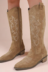 Retro embroidered block heel mid-calf western cowboy martin boots