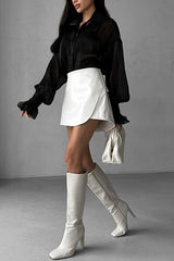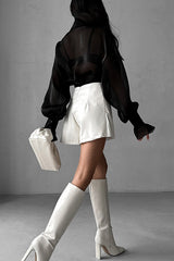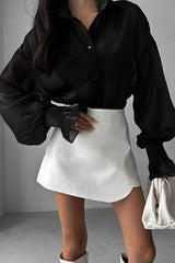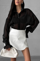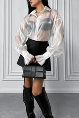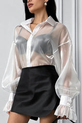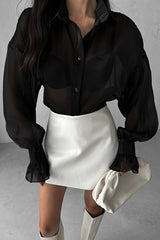 Fashion lapel long sleeve ruffled see-through casual shirt