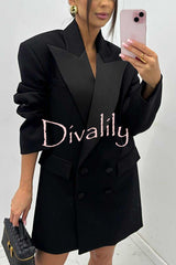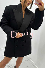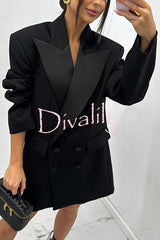 Chic style satin lapel button up long sleeve oversized blazer