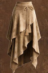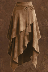 Fashionable irregular tie-up tassel embellishment casual midi skirt