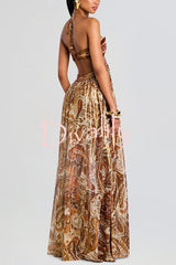 - This chiffon dress features an off-the-shoulder design that beautifully accentuates the shoulder line. The open back and side cutouts create a stylish silhouette, while the paisley print adds a touch of modern bohemian flair. The concealed back zipper and hook-and-eye closure ensure both comfort and style, making it ideal for warm weather activities and vacations.Our distinctive clothing will add instant style to your wardrobe.