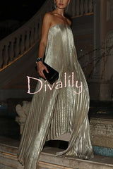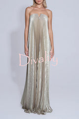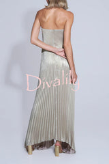 Maya pleated metallic fabric off shoulder asymmetric hem a-line maxi dress