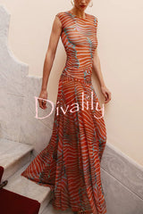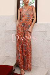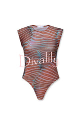 Bella stretch mesh unique print bodysuit and high rise elastic waist maxi skirt set