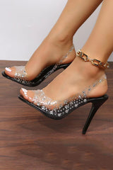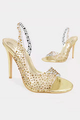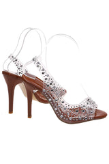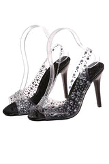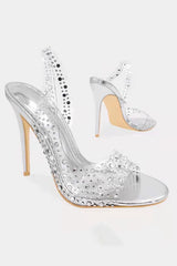 Fashionable rhinestone high heel slingback open toe sandals