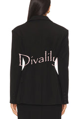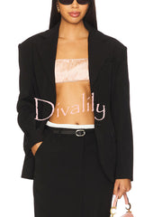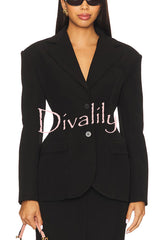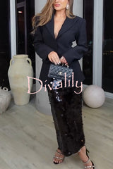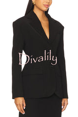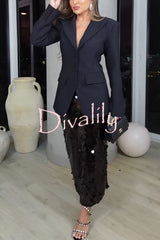 Chic holiday look padded shoulder fitted waist long sleeve pocket lapel blazer