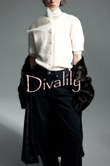 Cozy sweet darling knit sheer organza bow neck short puff sleeve button cardigan