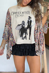 Unique ethnic print batwing sleeve loose top