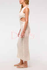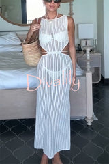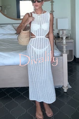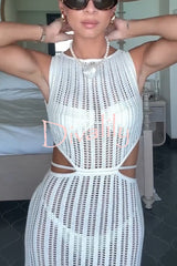 - Our new swim coverup in a slim-fitting maxi dress silhouette and crochet-style fabric, featuring an on-trend slash neckline and cutouts at the waist with a tie-back detail.