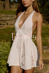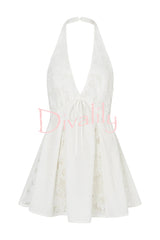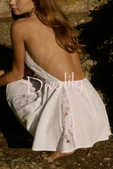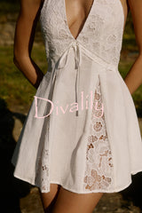 Stylish lace patchwork v-neck backless elegant mini dress