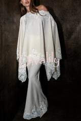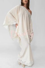 Like a swan satin lace trim high rise elastic waist drape maxi skirt
