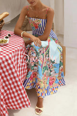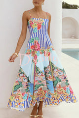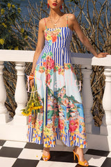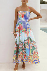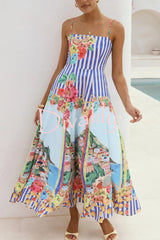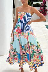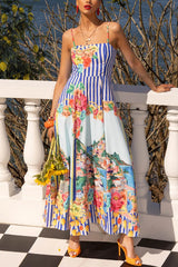 Unique printed spaghetti strap square neck casual holiday maxi dress
