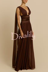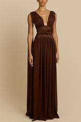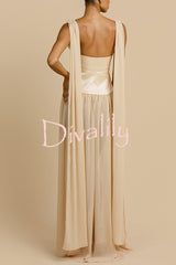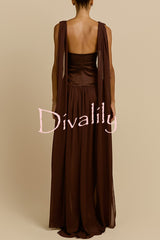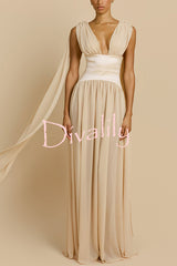 Ramona chiffon drape adjustable straps elastic taffeta waist gown maxi dress