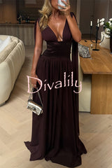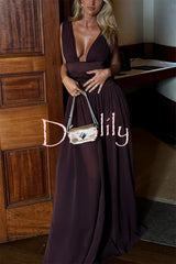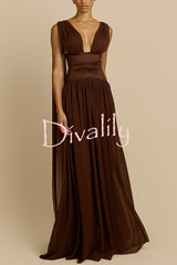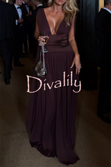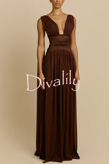 - The gown features a deep V-neck design, with delicate pleating at the bust creating a soft, flowing drape. A unique elastic taffeta belt accentuates the slender waist, and the skirt gracefully cascades to the floor, light and airy. The back features a low square neckline, subtly revealing the skin, while adjustable straps extend into long, flowing ribbons, adding a touch of whimsical romance.Our distinctive clothing will add instant style to your wardrobe.