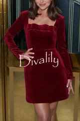 - Neckline: Velvet Bow Detail Square Neck