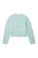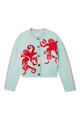 - Bring a touch of coastal chic to your everyday style with this bold sweater! This soft blue sweater features contrasting blanket stitch details and our own red octopus graphic, playfully wrapped at the collar and cuffs. The loose, dropped shoulders make it effortlessly versatile, perfect for layering over a T-shirt or pairing it with wide-leg pants.