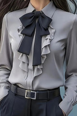 Fashion ruffled bow tie casual long-sleeved shirt