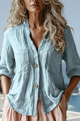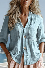 Linen blend loose long-sleeved button-pocket casual shirt