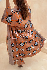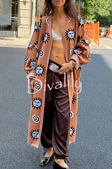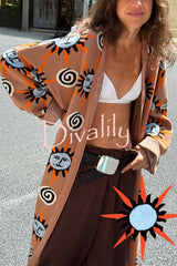 Mediterranean art knit unique sun vortex print bell sleeve long cardigan
